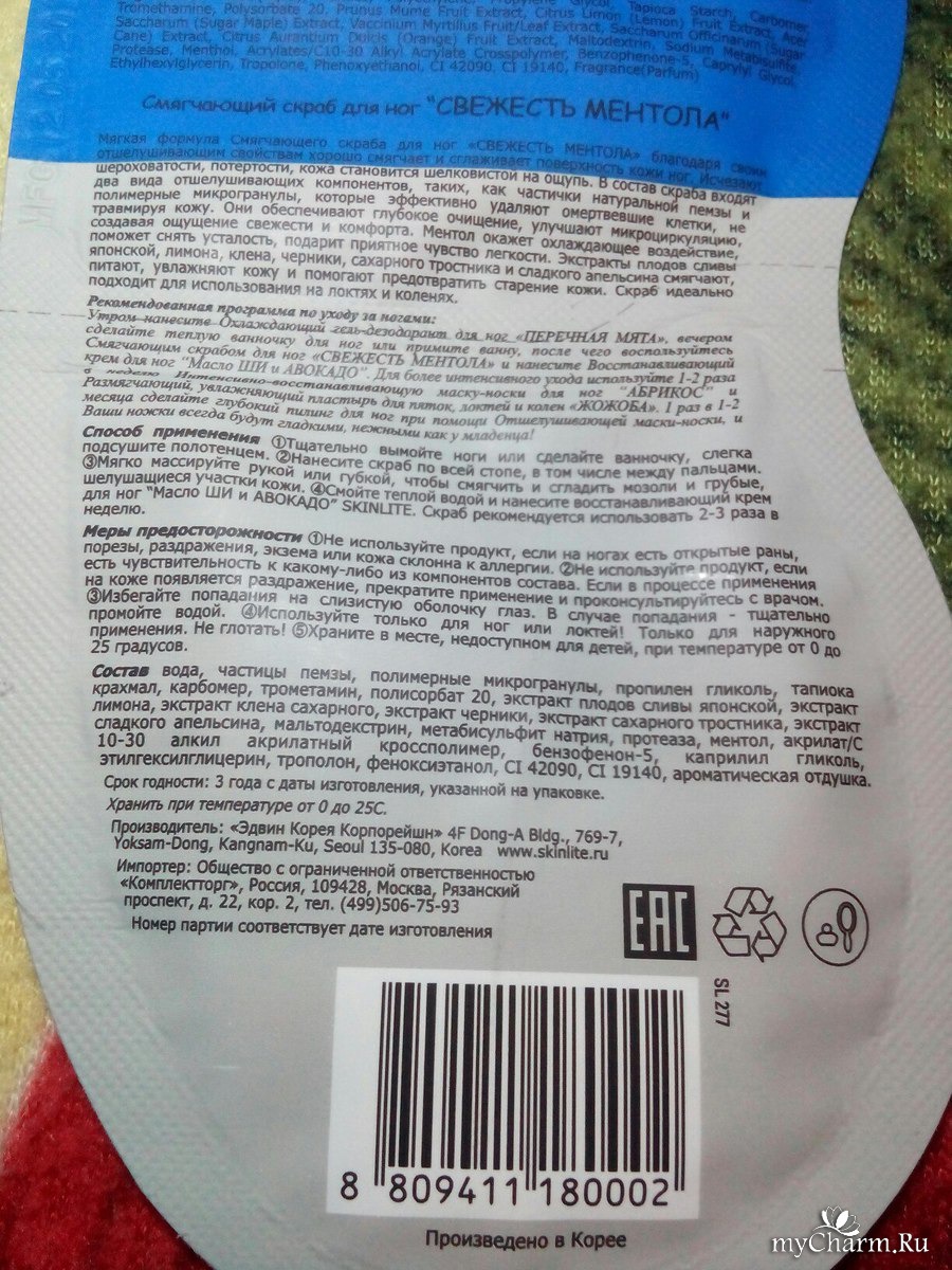 myCharm.Ru → Skinlite Смягчающий скраб для ног «Свежесть ментола»