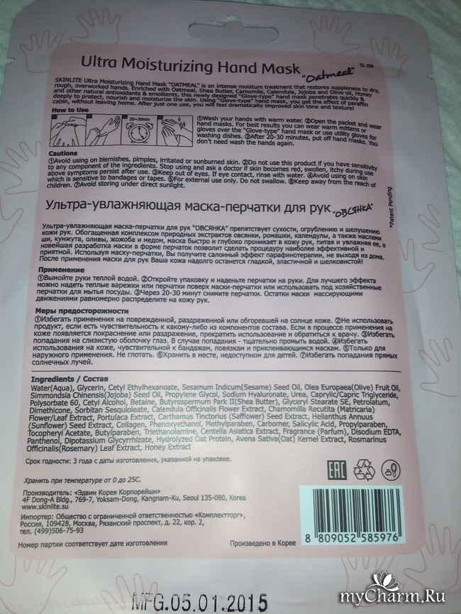 myCharm.Ru → Skinlite Ultra Moisturizing Hand Mask Datmeal Skinlite