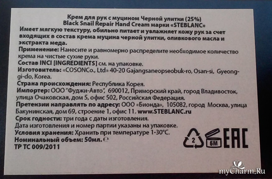 myCharm.Ru → Steblanc Black Snail Repair Hand Cream