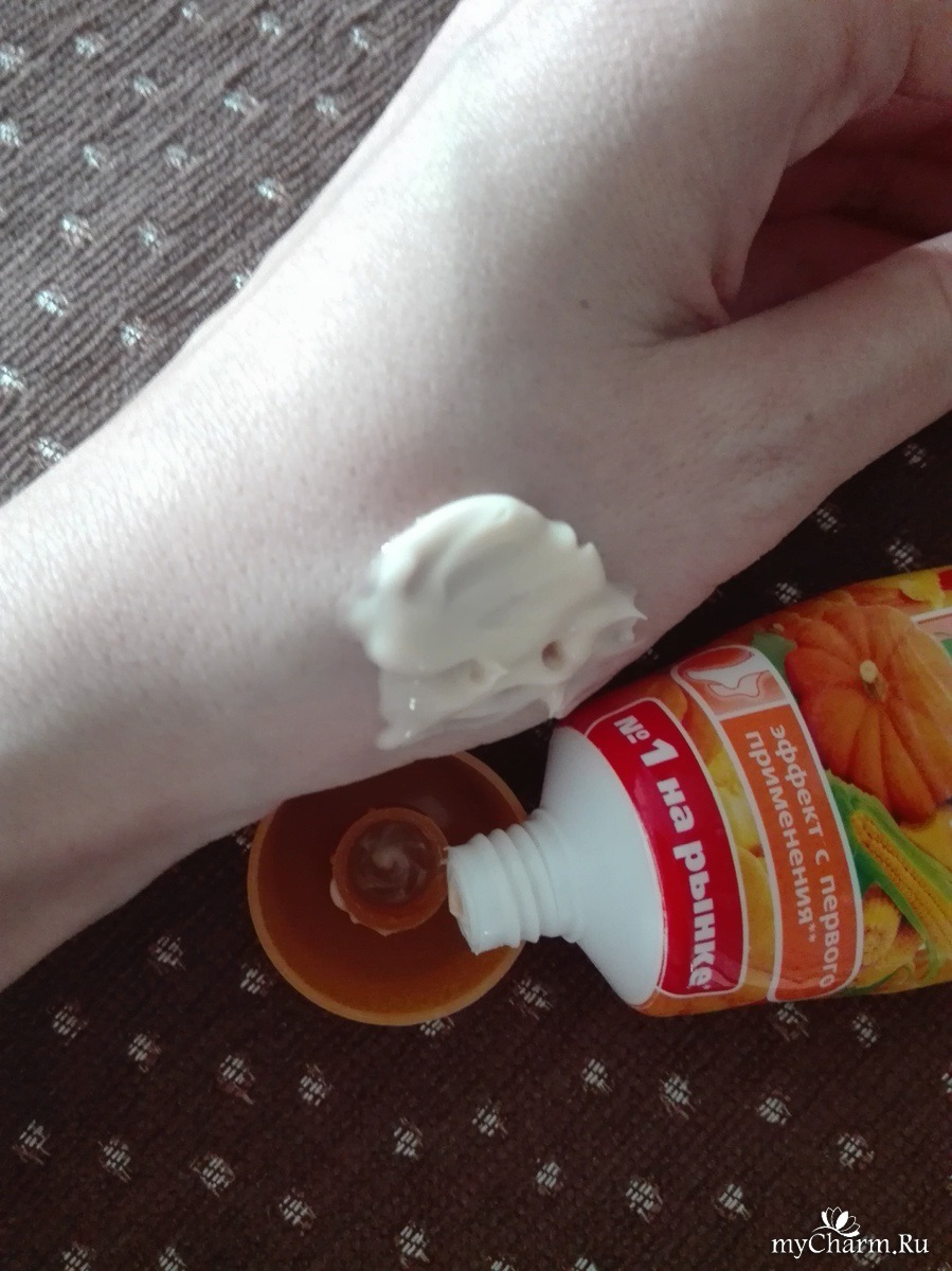 Крем сам по себе нежный, впитывается средне, поэтому я его наношу только на ночь, чтоб потом не вставать, а сразу спать лечь. На коже стоп я ощущаю пленку. Цвет светло-оранжевый. Очень сильно пахнет, такой яркий фруктовый аромат, мне все-таки кажется, что больше пахнет дыней, а не тыквой. Но я вообще не люблю сильные запахи, только из-за этого я его точно не куплю снова. Он хорошо увлажняет кожу стоп, но он не подойдет людям с очень сухой кожей стоп, особенно если есть трещинки. Объем 80 мл.