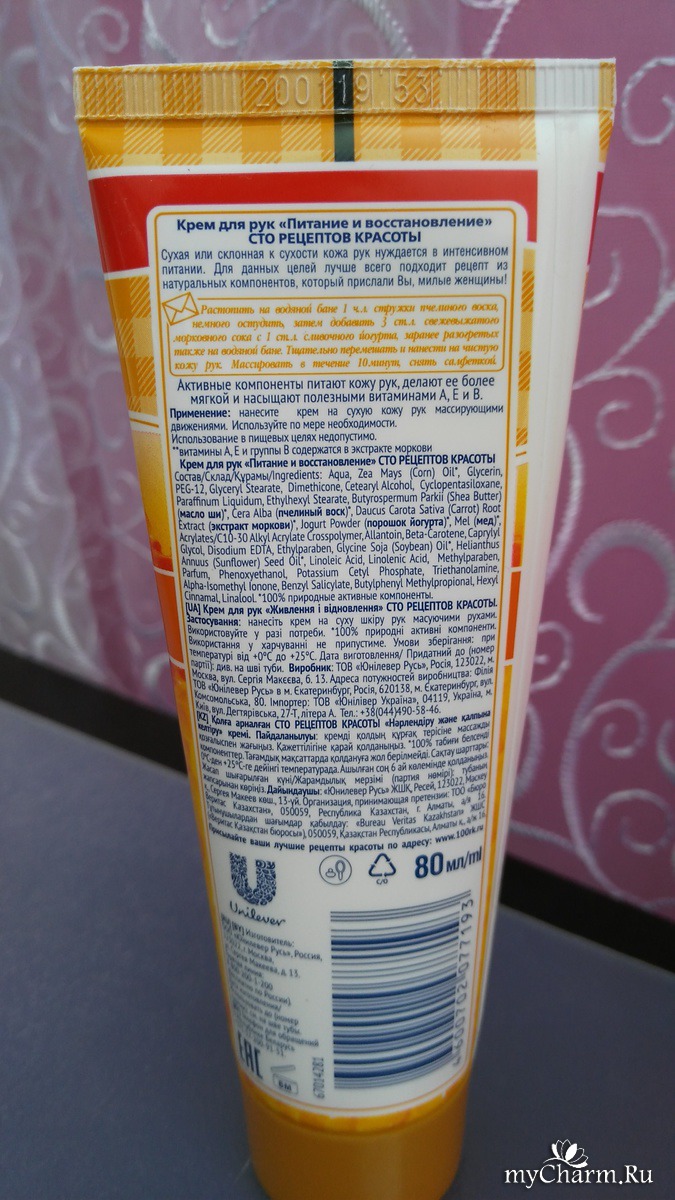 myCharm.Ru → Сто рецептов красоты Крем для рук Питание с пчелиным воском