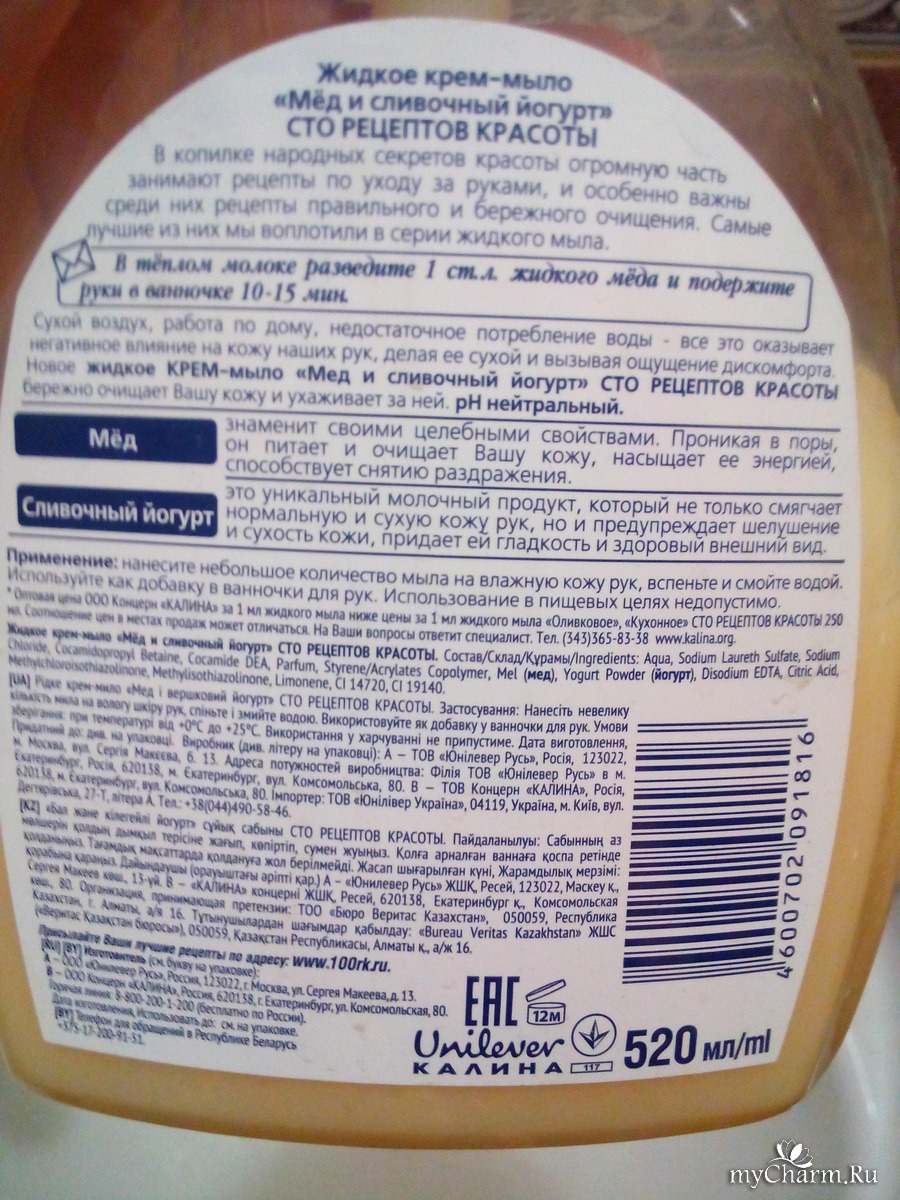 myCharm.Ru → Сто рецептов красоты Крем-мыло "Мед и сливочный йогурт" питательное