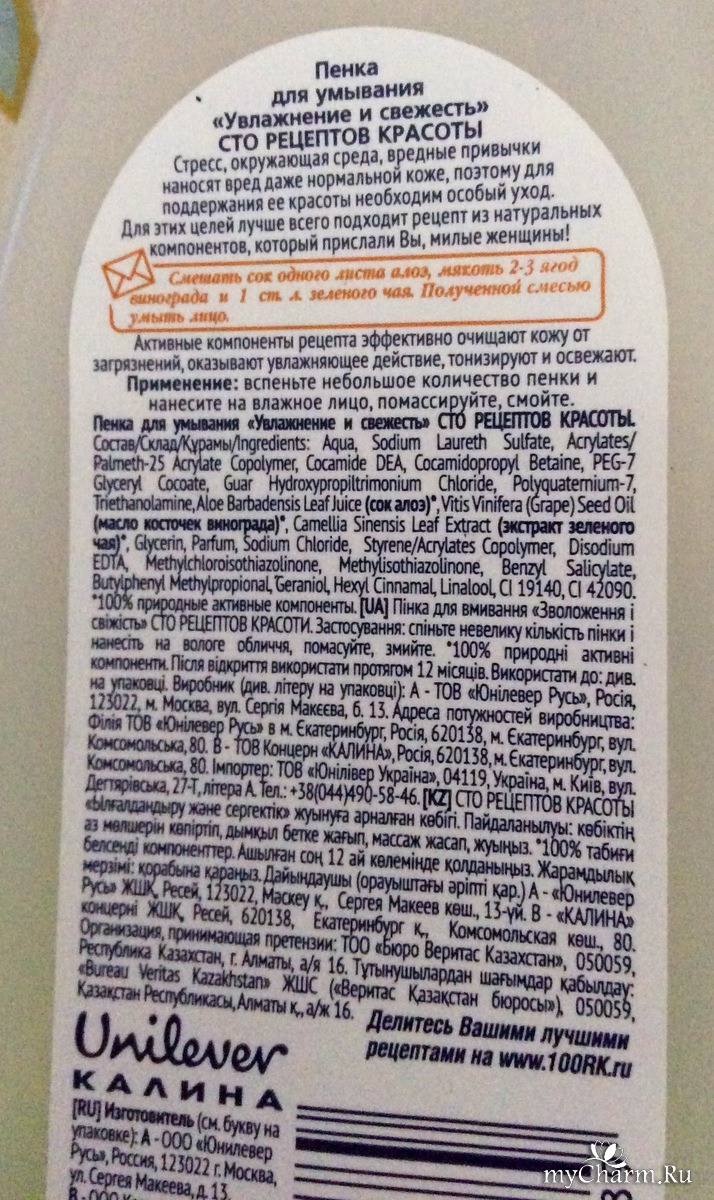 myCharm.Ru → Сто рецептов красоты Пенка для умывания "Увлажнение и свежесть"