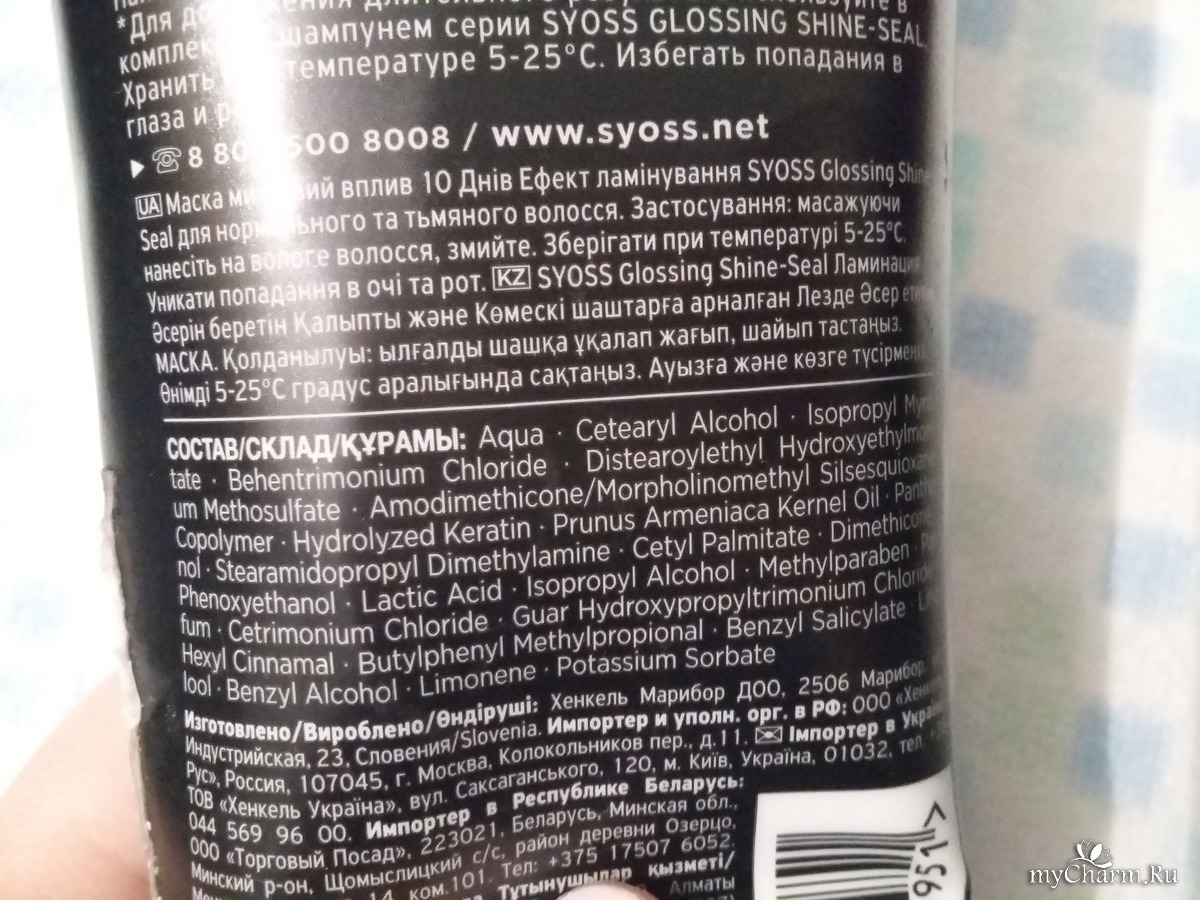 myCharm.Ru → Syoss Маска для волос Glossing Shine-Seal с эффектом ламинирования