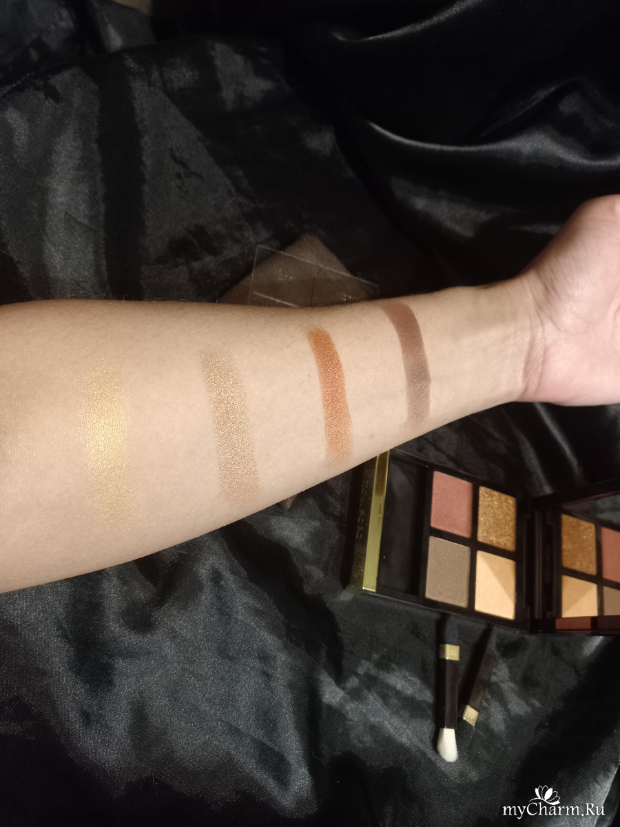 Четыре лаконичных сатиновых оттенка:старое золото с ярким шиммером, лимонное золото с лёгким сиянием, шёлковая терракота и морозный кофе. Шикарны, как для офисного, соответственно дневного макияжа, так и для яркого вечернего мейка в стиле смоки айс.