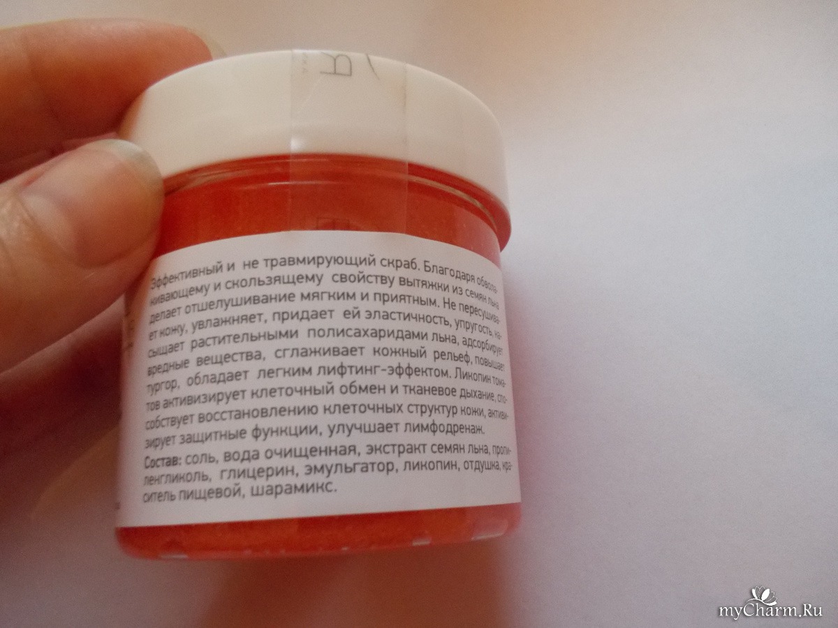 В скраб Томатный солевой входит ликопин, который является антиоксидантом, и семя льна с его обволакивающим свойством. Основа скраба мелкая соль, которая нежно шлифует и очищает кожу лица, тела и головы. Скраб не только очищает, но и питает и увлажняет, улучшает тургор кожи и дарит ей тонус.