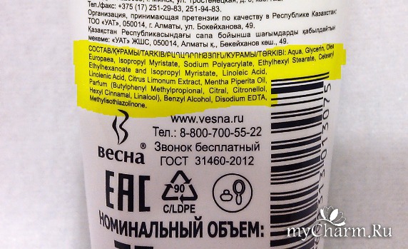 myCharm.Ru → Весна Крем-гель для ног "Мята и лимон"
