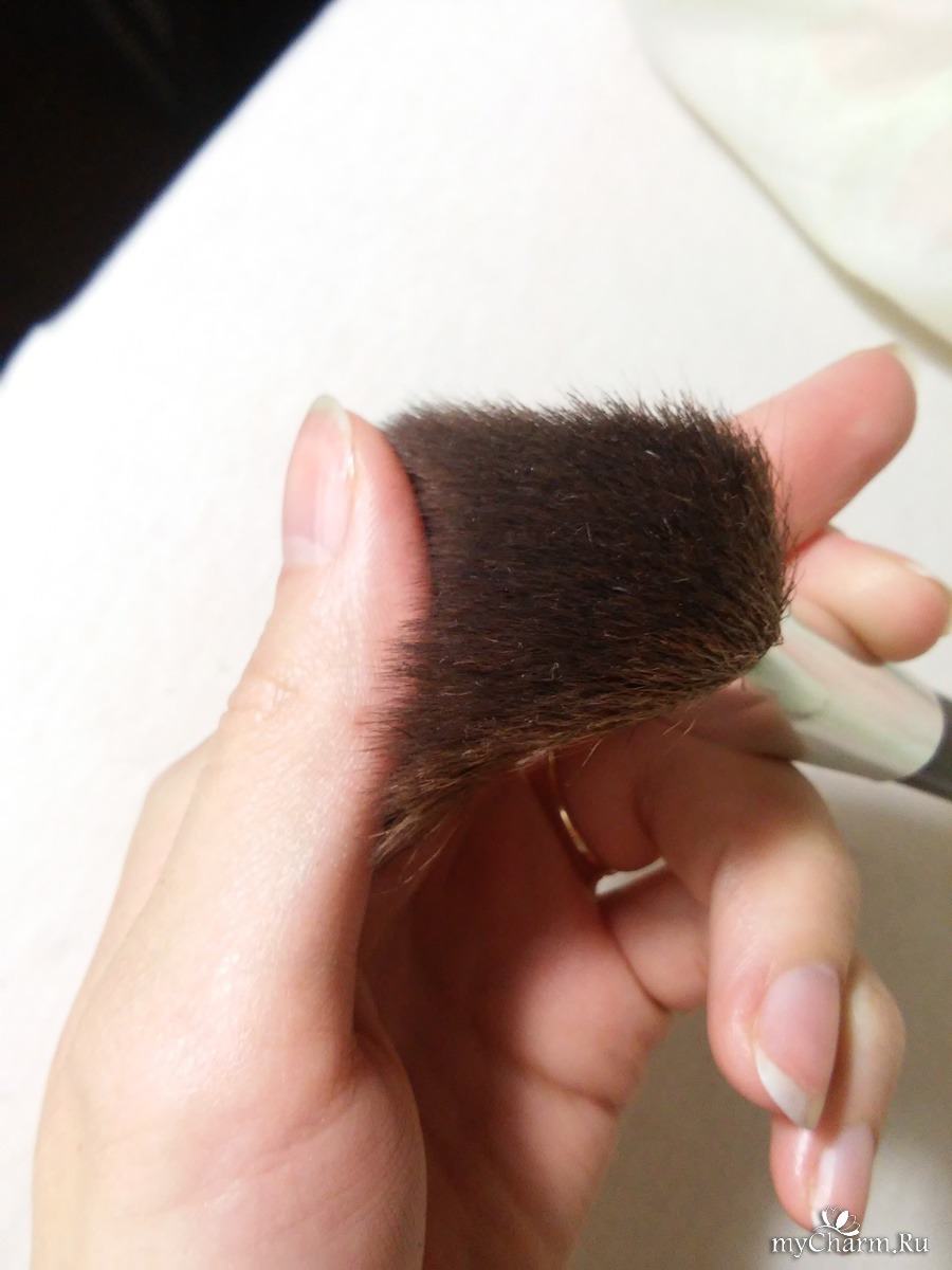 И вот, пришла эта кисточка для румян! Смотрится очень стильно. Удобная форма, длина. Ручка приятная - деревянная. Кисточка натуральная - сделана из козьей шерсти. Кому-то она не нравится, но при нанесении, лично у меня, не возникает дискомфорта. Кисть абсолютно не лезет! Набита плотненько, форма тоже очень четкая, никакие волосинки не торчат, где не надо. Очень она мне нравится! Этот продукт упоминается в следующих материалах сайта: