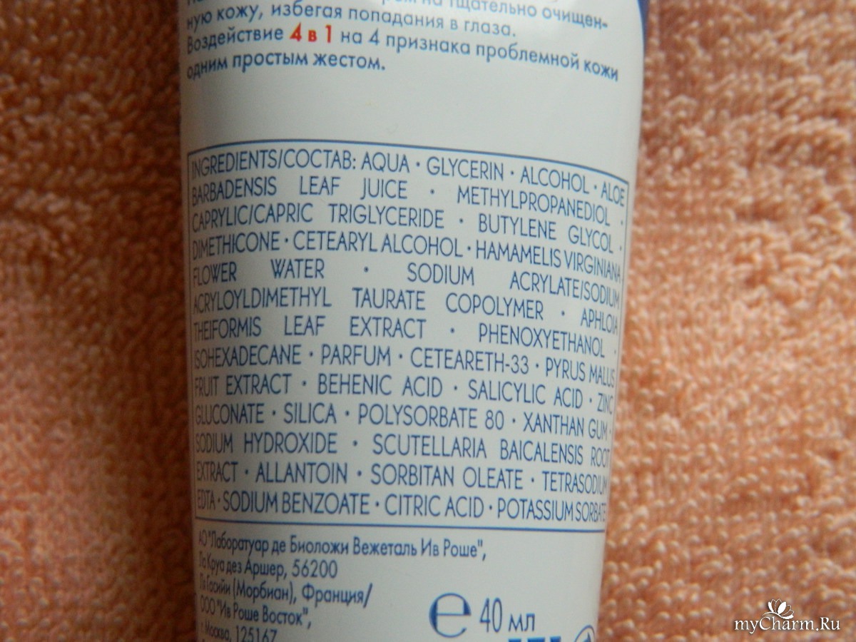 Запах ненавязчивый... такой, немного с кислинкой будто, чувствуется нотка алоэ. У Лосьона из этой же серии похожий запах. Из плюсов - имеет удобный тоненький носик, поэтому можно наносить его точечно. А при желании - и на все лицо сразу. У меня проблема с этим кремом в том, что непонятно, когда его использовать! Утром, до макияжа я не могу. Нет заявленного матирующего эффекта и кожа быстрее жирнится. Пытаюсь на ночь, чтобы "боролся" с высыпаниями, хотя в этом плане есть у меня другие, более эффективные помощники, поэтому этот крем у меня очень редко используется.