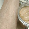 Он невероятно аппетитно пахнет спелыми персиками, и этот аромат будет сохраняться на коже ещё около часа. Эксфолиант очень густой, с большим количеством молотых косточек оливы и абрикоса. Эксфолиант легко распределяется по влажному телу, его мелкие частицы деликатно очищают кожу, а кремовая основа поможет увлажнить и напитать ее. Эксфолиант без проблем смывается, делая кожу очень гладкой и ухоженной.