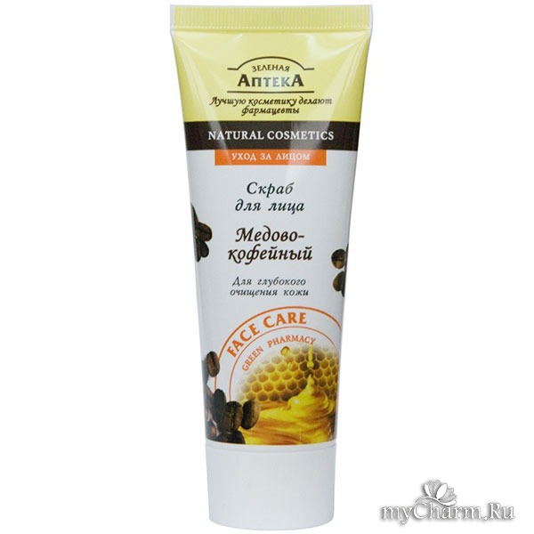 Скраб для лица Медово-кофейный для глубокого очищения кожи Зеленая Аптека