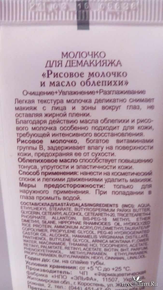 myCharm.Ru → Зеленая аптека Молочко для демакияжа Рисовое молочко и масло облепихи