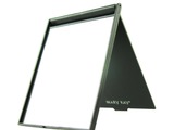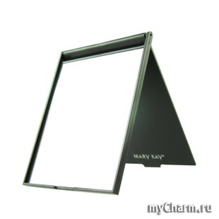 Зеркало находится в черном футляре-подставке и вставляется в кармашки, расположенные на футляре. Зеркало очень удобно благодаря наличию футляра-подставки, которая раскладывается, на поставку можно положить тюбики с тушью, помадой, чтоб не раскатывались.
