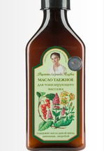 Масло сибирское массажное для бани содержит масла кедрового ореха, шалфея мускатного, мед от Рецепты бабушки Агафьи