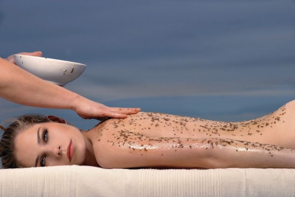 4 ст. ложки молотого кофе залить кипятком так, чтобы получилась густая кашица, дать постоять 20 минут под крышкой, добавить 1 ст. ложку оливкового масла, 1 чайную ложку мёда, 2-4 капли эфирного масла грейпфрута или апельсина, хорошо перемешать. Наносить круговыми массирующими движениями на влажную распаренную кожу в бане, смыть под душем и принять контрастный душ, чередуя горячую воду с холодной. Завершить процедуру прохладной.