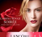 Коллекция Lancome Holiday 2009 L’Absolu Rouge Soiree – невероятно пышная, искрящаяся, броская. Цвета – насыщенные, с блеском благородных металлов, как и подобает праздничному макияжу. Центральная палитра теней и румян – достаточно натуральная и сдержанная, но всё, что её окружает (лаки, помада, блески и даже тушь) – очень яркие и светящиеся.