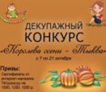 Интернет-магазин Тетушка.ру совместно с рукодельным форумом Hobbyportal.ru запускает декупажный конкурс для всех посетителей сайта и форума, а также участников групп во ВКонтакте и в Фейсбуке «Королева осени – Тыква».
