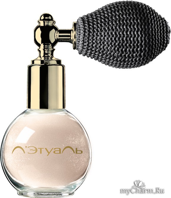 Рассыпчатая пудра для лица и тела, которая ложится на кожу мерцающей вуалью. Винтажный флакон с помпой помогает равномерно распределить пудру.