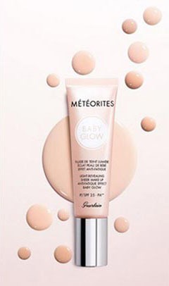 Guerlain Meteorites Baby Glow – почти прозрачная основа для макияжа, обеспечивающая безупречный мэйкап. Продукт выпускается в трех оттенках: #2 Clair, #3 Beige, #4 Dore.