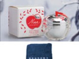 При покупке продуктов линии Nina от Nina Ricci на сумму 1900 рублей покупатель получает в подарок блеск для губ Nina в удивительном футляре в виде серебристого яблока с красными листочками.