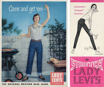 Первые джинсы для женщин Lady Levi's были созданы в 1934 году. И это были первые джинсы, сшитые исключительно на женскую фигуру. До этого женщины могли носить только джинсы, заимствованные у мужей или бойфрендов. И это были грубые рабочие штаны с неудобной застежкой на металлических пуговицах (созданные, между прочим, ещё в 1873 году!). И вот почти одновременно с появлением в магазинах чулок в продажу поступили первые женские джинсы. Поначалу это была всё та же неудобная застежка, но совсем скоро она была заменена на молнию.