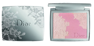 Кружевной орнамент – и в футлярах, и на самих продуктах в виде ювелирно исполненного рельефа. Пудра Dior Poudrier Dentelle – микс из двух оттенков, когда эти оттенки ложатся на лицо, они создают неповторимое свечение и естественный прозрачный цвет. Две палетки пятицветных теней из «кружевной» коллекции представлены в богатых приглушенных цветах, каждая их палеток способна создать роскошный законченный образ. С розовым центром – палетка Coquette 743, с серо-синим центром – Iridescent 059.