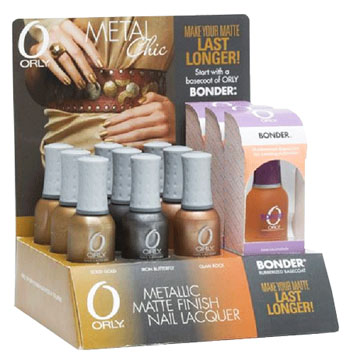 Бренд Orly создал коллекцию Metallic Matte 2010 Collection – металлизированных лаков с матовой фактурой. В коллекцию вошли три драгоценных оттенка. Образы подружки рокера и девушки дискотек 80-х по-прежнему актуальны.