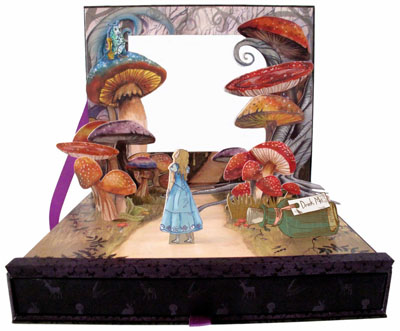 Коробочка выполнена в виде леса с гигантскими грибами, куда по сюжету попадает Алиса в одной из историй. В общем, всё действительно очень сказочно и уникально.