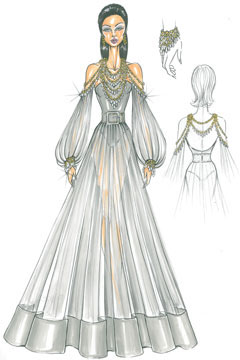 До 20 марта, когда произойдет премьера наряда, платье держится под присмотром двух вооруженных охранников. Пока известен лишь эскиз, по которому платье было исполнено. Согласно задумке, это будет летящая серебристая ткань с бриллиантами и элементами из чистого золота.
