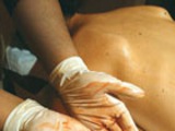 4. Нанесение. Начните с ног и продвигайтесь вверх, обязательно обработайте всё тело, включая ягодицы и низ живота. Чтобы нанести средство на спину, попросите кого-нибудь вам помочь, либо используйте специальную кисть-губку. А такие участки тела как лодыжки, локти, колени, шея и лицо, нужно обрабатывать не так интенсивно, чтобы они не были слишком темными. Чтобы избежать полос, наносите средства для автозагара круговыми движениями и делайте это очень внимательно, чтобы не пропустить ни одного участка тела, тогда пятен можно избежать.