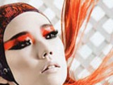 А вот этот образ привлек уже многих журналистов от красоты. Во-первых, оранжево-красный для волос становится действительно трендовым. А во-вторых, Тао Окамото так искусно использовала ярко-красные пигменты для теней, что смотрится образ очень сбалансировано. Ещё стоит отметить ярко-черные брови, они хорошо удерживают насыщенный алый цвет, а все остальное лицо – обнаженное, даже немного выбеленное, включая губы.