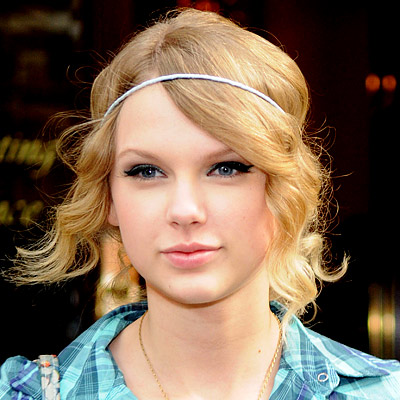 8. Тэйлор Свифт и симпатичный ободок. Делаем кудри, расчесываем, низкий конский хвост, а сверху – ободок или косынка. Здорово маскирует высокий лоб.