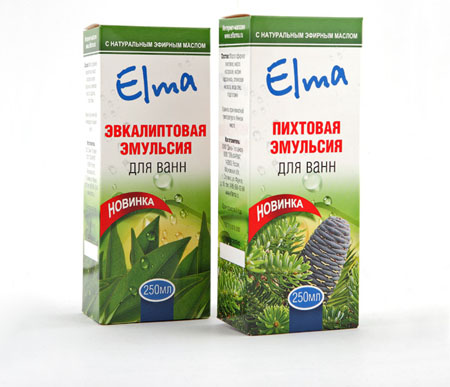 Эмульсии для ванн Elma объединяют в себе свойства эфирных масел пихты и эвкалипта.