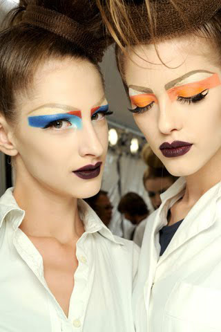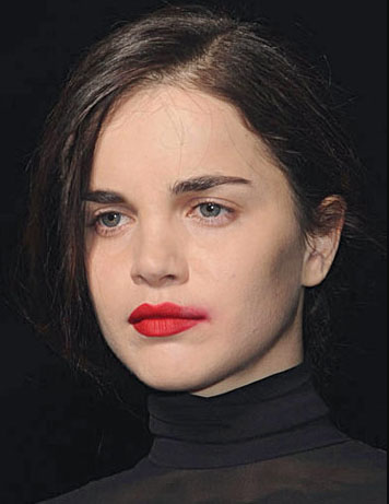 Стоит отметить этот же тренд с красными губами, в развитии у Maison Martin Margiela. Это такой «новый вамп», или глампир, как его уже окрестили критики. Черные брови поддерживают образ.