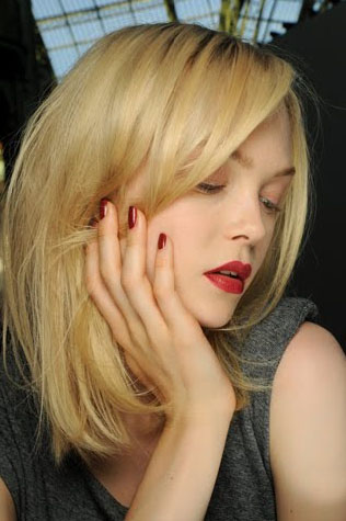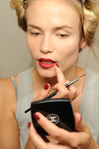 Основной лук от Chanel – «просто красные губы». Великолепная идея и исполнение. Лак для ногтей предлагается на тон темнее. Такой вот элегантный и сексуальный минимализм.