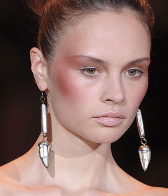 5. Пляжный бронзовый оттенок кожи. Красивые светящиеся текстуры бронзеров и румян понадобятся следующей весной. Особенно не отказывайтесь от румян. А наносить их можно по-разному, и не только на самую выступающую часть скул.