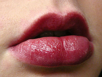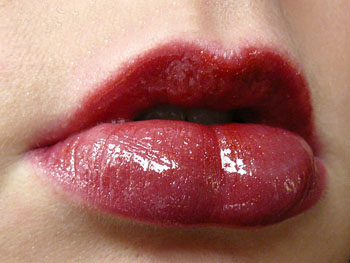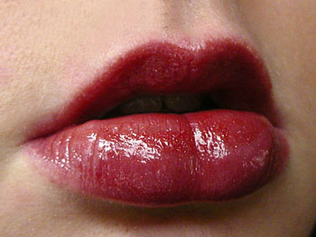 • Второй – губная помада поверх бесцветного блеска или бальзама. Поскольку нижний слой бесцветный, то верхний как бы немного разбавляется, получаем – более бледный оттенок и немного блестящий. Такой прием можно использовать, если хотите натурального макияжа.