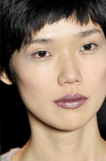 Эффект морозных губ показали визажисты на показе Peter Som, и это тоже предстоящий хит. Обратите внимание на деликатную голубизну на висках.