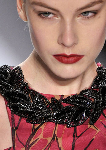 Если выделяем только губы – то красный матовый оттенок, как на показе Luca Luca