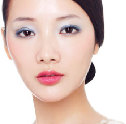 Схема для холодной палитры оттенков. Синим карандашом прорисуйте нижний контур глаз, линию слегка растушуйте аппликатором или подушечкой пальца. Серые тени наложите на верхнее подвижное веко, слегка уводя рисунок схемы макияжа вверх, чтобы создать форму «кошачьего глаза». Бледно-голубые тени под бровью и бледно-розовые румяна во внутреннем уголке глаза придадут образу нарядность. Холодные румяна положите на выступающую скуловую косточку и нанесите помаду Plum Blossom на губы (на серединку губ погуще). Для голубых глаз лучше использовать коричневую тушь, для карих – черную.