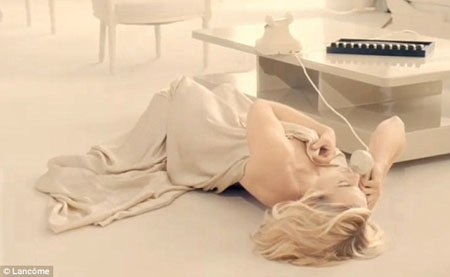 35-летняя актриса практически обнажилась перед объективом Марио Тестино. По сюжету Кейт в рекламе говорит по телефону, лежа на полу, прикрывшись только бежевым шелком. Единственное яркое цветное пятно в рекламе – это помада, остальное – в приглушенных песочных тонах.