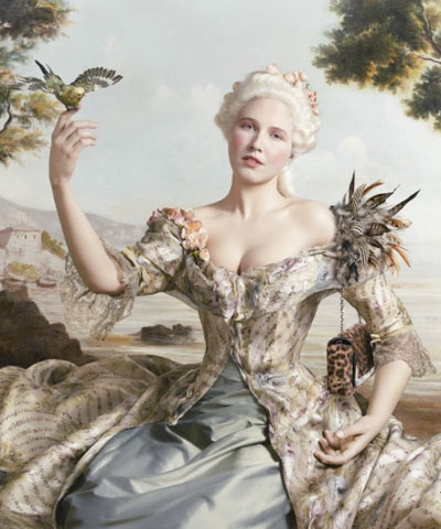 В качестве окружения для моделей обуви и аксессуаров из новой коллекции взяты идеи классических портретных полотен. Но фото – все современное, то есть, это девушки-модели из нашего времени, сфотографированные в костюмах и интерьере прошлого.