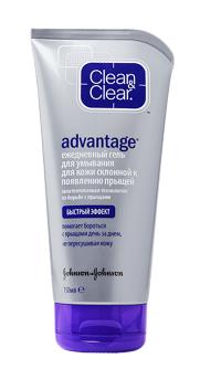 - Ежедневный Гель для умывания Clean&Clear® Advantage от прыщей, созданный по уникальной технологии, эффективно очищает закупоренные поры, день за днем улучшая внешний вид кожи. Гель растворяет излишки жира, мягко отшелушивает мертвые клетки, выравнивая кожу и улучшая цвет лица.Рекомендуемая розничная стоимость – 170 руб.