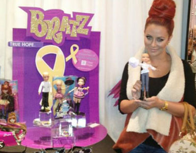 Певица Aubrey O'Day в своем твиттере призывает купить лысую куклу и помочь больным деткам.