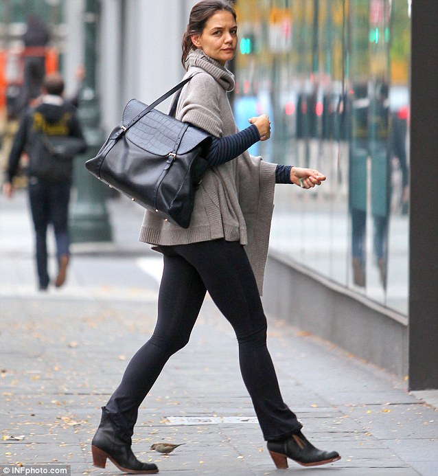 И все же, отправляясь за покупками в нью-йоркский Whole Foods, Кэти была одета со вкусом, хоть и в стиле casual: черные леггинсы и черные полусапожки, свободный серый свитер поверх топа с длинными рукавами. Образ дополняла сумка большого размера через плечо, и прическа "свободный пучок".