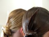 1.Чтобы создать экстраблеск нанесите John Frieda Frizz-Ease сыворотку для облегчения укладки непослушных волос и соберите волосы в низкий пучок.