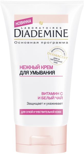 Нежный крем для умывания с белым чаем и витамином С Diademine «Основная программа» бережно очищает кожу от загрязнений, помогает снять макияж, поддерживает водный баланс. Результат виден сразу – после умывания кожа становится свежей и сияющей. Крем идеально подходит для ежедневного применения.