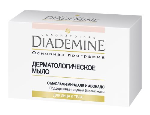 Дерматологическое мыло с маслами миндаля и авокадо «Основная программа». Больше не придется бояться сухости кожи при использовании мыла! Новинка от Diademine поддерживает водный баланс, помогая коже оставаться гладкой и ухоженной. Мыло подходит как для лица, так и для тела. Масла миндаля и авокадо обеспечивают питание и увлажнение, бережно очищая кожу.