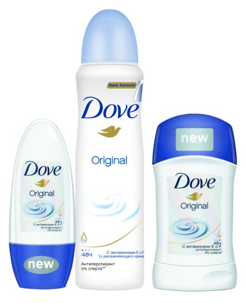 Антиперспиранты Dove, обеспечивая эффективную защиту от пота и неприятного запаха на 48 часов, ухаживают за кожей подмышек, помогая предотвратить неприятные ощущения и раздражение. Они на 1/4 состоят из увлажняющего крема и содержат витамины E и F, благодаря чему заботятся о деликатной коже подмышек и способствуют ее восстановлению после бритья всего за 5 дней*!