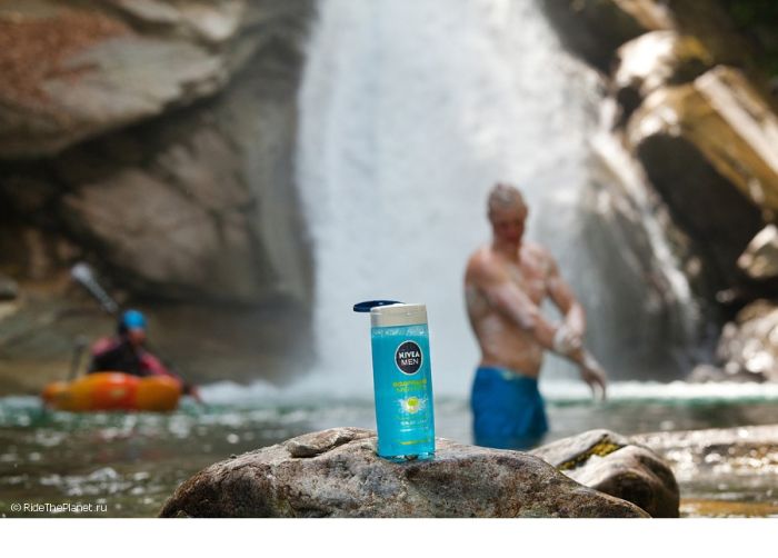 Летнее путешествие спортсменов при поддержке Nivea Men началось с культовой для каякинга местности в Северной Италии – долины Вальсезии и горной реки Сезии. «В начале лета в реку Сезия, образующую долину, стекаются десятки притоков, каждый из которых достоин внимания экстремальных каякеров со всего мира, - рассказывает участник RideThePlanet Дмитрий Данилов. – Мы начали сплав с основных спотов на Сезии, которые запомнились большим количеством воды и мощными порогами, а затем перебрались на притоки Эгуа, Гронда и Сорба – классику альпийского экстрим-сплава. На Сорбе Егор Воскобойников и Алексей Лукин прошли знаменитый Devil’s Slide – водопад в щели длиной около тридцати метров с перепадом порядка пятнадцати». Понятно, что сложнейшие спуски отнимают много сил. Но даже в такие моменты, несмотря на жесткие физические нагрузки, освежающий гель для душа «Бодрящий ментол» от Nivea Men дарил спортсменам приятную прохладу и бодрость.